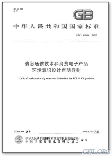正文摘要:【 標準編號 】 GB/T 23689-2009 【 標準名稱 】 信息通信技術和消費電子產品環境意識設計聲明導則 【 英文名稱 】 Guide of environmentally conscious declaration for ICT & CE products 【 發布單位 ... |