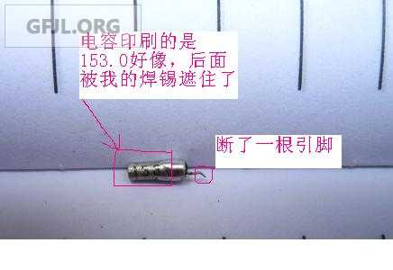 | 那上面的“153.”是什么?告訴你吧,那不是電容,那個是晶振,頻率為153.6KHz的晶振,到大一點的電子市場買一個換上去就可以了。 還有那些孔不通是正常的,不用管它的! |