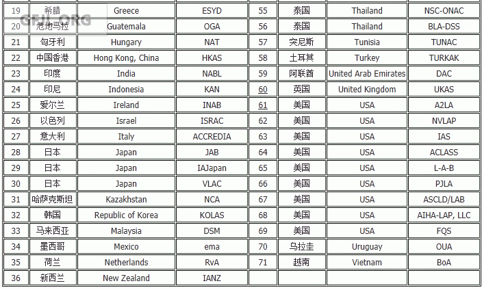 ILAC互認(rèn)成員(58個(gè)經(jīng)濟(jì)體,71個(gè)認(rèn)可機(jī)構(gòu)) 資料獲取日期:2011年3月
