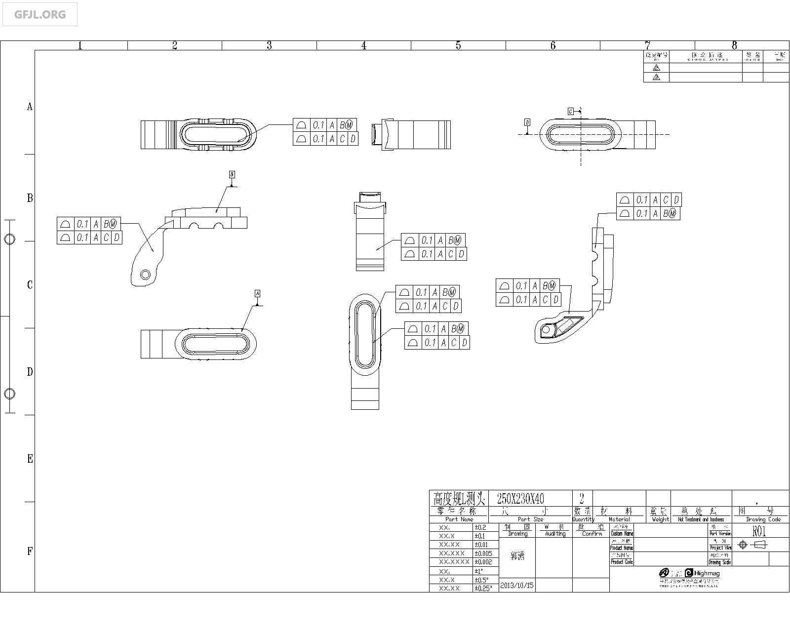 A基準(zhǔn)為平面,B基準(zhǔn)為整個(gè)槽,C.D基準(zhǔn)為槽的兩中分線! 理論尺寸按3D圖為準(zhǔn)。 |