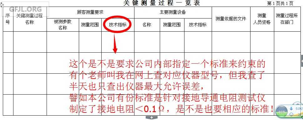 我認為借助于關(guān)鍵測量過程管理臺賬這個主題適當普及和探討一下“關(guān)鍵測量過程是如何能控制好的?有哪些常用的監(jiān)控手段?”也有一定的益處,既然有人認為本主題并不復雜,并反對吉兄建議的這個建,我認為樓主關(guān)于關(guān)鍵測量過程一覽表中的疑問,如果沒有更多的建議和回答,告一段落未必不可。再回到樓主的問題上吧,樓主對一覽表中的顧客測量要求“技術(shù)指標”一欄發(fā)問:這個是不是要求公司內(nèi)部指定一個標準約束,有人建議他上網(wǎng)查對應儀器型號,他沒有查到,該怎么辦? 我在7樓做了回答并提出了改進這個關(guān)鍵測量過程管理臺賬的建議。我認為,2樓的建議還是中肯的,作為關(guān)鍵測量過程一覽表怎么能“沒有為了滿足這些規(guī)定要求設(shè)計的測量過程并形成文件”呢?這就在直截了當回答該一覽表信息量過少,公司內(nèi)部應該指定一個標準,一覽表應該給出該標準(技術(shù)文件)的編號,并依據(jù)這個標準填寫被測參數(shù)名稱、測量范圍、允許誤差或控制限(而不是籠統(tǒng)地說技術(shù)指標)。 有人建議樓主上網(wǎng)查對應儀器的型號,這顯然是沒有用的,因為此欄目要求填寫被測參數(shù)的允差,不是儀器型號也不是儀器的計量要求。儀器的名稱、測量范圍、允差或準確度等級應該填寫到下一個欄目“主要測量設(shè)備”中,而下一個欄目填寫的依據(jù)就是“測量依據(jù)的文件”規(guī)定。 如果這兩個文件沒有或查不到相關(guān)信息,就表示工程技術(shù)人員的設(shè)計開發(fā)不滿足要求,應該向他們提出整改要求,實在不行還可以通過開出“不符合項報告”強制其整改。 至于該“關(guān)鍵測量過程一覽表”的其它不足,我也已經(jīng)提出過看法和建議,就不多說了,僅供樓主參考。 |