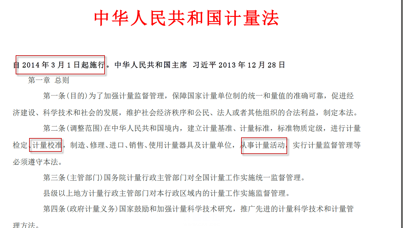 很懷疑你摘錄的這段文字的真實性,不知是在哪里看到的。我感覺這是拼湊起來的東西,內容上好像是出自正在修改的《計量法》,不過至今還沒有批準發布呢,以前聽說大概要等到2016年批準發布。時間上也不對,可以看一下: 中華人民共和國主席令 第八號 《全國人民代表大會常務委員會關于修改〈中華人民共和國海洋環境保護法〉等七部法律的決定》已由中華人民共和國第十二屆全國人民代表大會常務委員會第六次會議于2013 年12 月28 日通過,現予公布。 《全國人民代表大會常務委員會關于修改〈中華人民共和國海洋環境保護法〉等七部法律的決定》對《中華人民共和國海洋環境保護法》、《中華人民共和國藥品管理法》、《中華人民共和國計量法》、《中華人民共和國漁業 法》、《中華人民共和國海關法》、《中華人民共和國煙草專賣法》所作的修改,自公布之日起施行;對《中華人民共和國公司法》所作的修改,自2014 年3 月1 日起施行。 中華人民共和國主席習近平 2013 年12 月28 日 這是我復制的最新修正版《計量法》上的內容,所說的修改也只是改動了兩個條款的內容,其他條款不變。而且從時間上,可以看出對《計量法》所做的修改自公布之日起施行,即2013年12月28日,只有對《公司法》的修改是2014年3月1日施行。而你摘錄的內容卻說《計量法》是2014年3月1日施行,因此應該是不正確的東西。 |