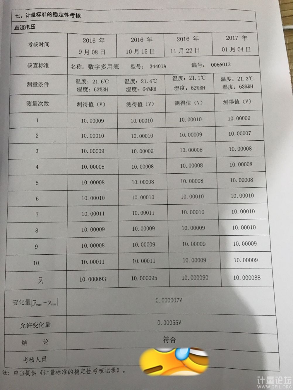 | 5500A的一年指標是“+/-50ppm of settings",34401A的一年指標是"+/-(0.0035%讀數+0.0005%量程)”,合40ppm,考核時間總共4個月, 應該沒有0.00055V那么大,我估計在0.00020V以內 |
