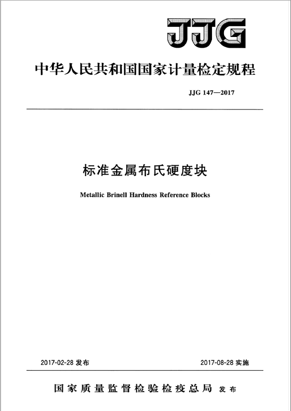 JJG 147-2017 標(biāo)準(zhǔn)金屬布氏硬度塊檢定規(guī)程