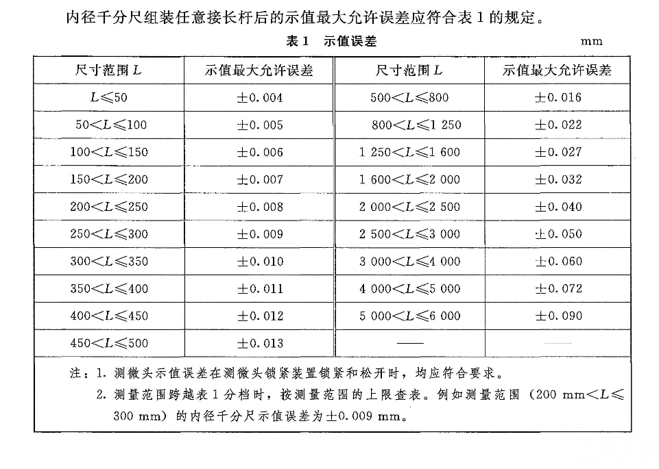 | 根據測微頭+接長桿的尺寸選擇允差,不同組合方式,選擇不同允差 |