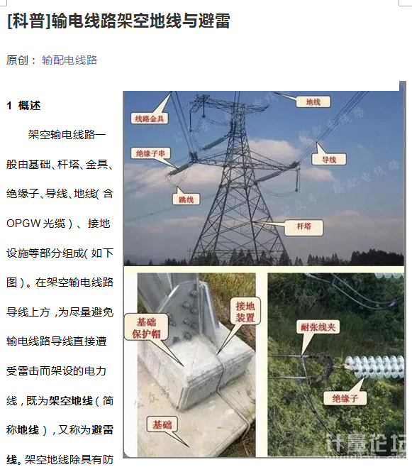 知道是對的,怕說的不專業,找了百科粘貼過來自己也學習了下 架空地線是架設在輸電線路上方,為避免輸電線路遭受直接雷擊而鋪設的線路,可稱為避雷線或地線。隨著架空輸電線路覆蓋范圍不斷擴大,導致輸電線路遭受雷擊的概率也越來越大。自古以來,雷電不相融,架空地線就是處于雷云與輸電導線之間的一道屏障。輸電線路跨越廣闊的地域,在雷雨季節容易遭受雷擊而引起送電中斷,成為電力系統發生停電事故的主要原因之一。輸電線路安裝架空地線,可以減少雷害事故,提高線路運行的安全性。架空地線是高壓輸電線路結構的重要組成部分。高壓及超高壓變電站占地面積大,要求防直擊雷的區域大,除安裝避雷針保護外,也會采用架空地線保護。架空地線都是架設在被保護的導線和設備的上方,當線路上方出現雷云對地面放電時,雷閃通道容易擊中架空地線,然后通過架空地線的接地線或金屬桿塔本體將雷電流引入大地,以保護輸電線路正常送電。同時,架空地線還有電磁屏蔽作用,當線路附近雷云對地面放電時,可以降低在輸電導線上引起的雷電感應過電壓。架空地線必須與桿塔接地裝置牢固相連,以保證遭受雷擊后能將雷電流可靠地導入大地,以避免雷擊點電位突然升高而造成反擊。 據統計數據顯示,生活用電及工農業用電中,電力系統斷電跳閘事故主要因素分別為雷擊、人為或是自然災害等,而其中雷電導致停電的概率高達60%以上。天氣變化是不可控因素,所以只能在人力可控范圍內,提高輸電系統的安全性及防災性。架空地線就是電力系統減災防災的一項重要技術措施。 輸電線路架空地線運用實踐表明,架空地線能有效防止雷電直擊輸電導線;當雷擊輸電線路桿塔時,架空地線能起到分流作用,減小桿塔塔頂電位,防止雷電反擊;當雷擊輸電線路附近大地時,架空地線能起到屏蔽作用,降低輸電導線上的感應雷過電壓。 |