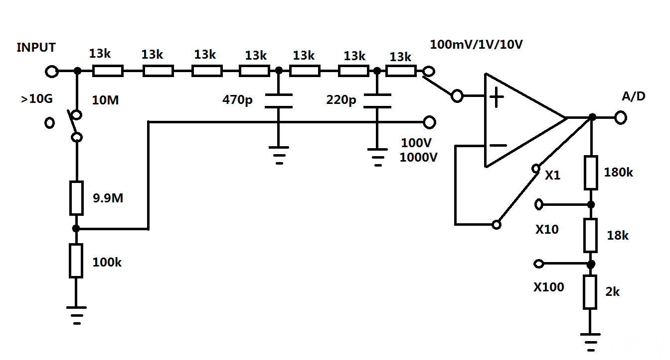 我的意思是說,雖然內附的10兆輸入電阻實際上也是并聯在輸入端,但畢竟與外接在接線柱上的狀況不同,這個電阻在線路板上的位置、電路板的引線、距離地線或屏蔽層的距離、包括繼電器觸點的熱電勢等等可能都有影響。 有時候,線路結構對性能的影響是非常明顯的,比如,著名的3458A,其前、后輸入端口按道理說應該是完全相同的。但是,實際上前后輸入時,示值存在零點幾微伏的差別。關于這個差別,也有不同的說法,一般說是溫差導致的熱電勢影響。 |