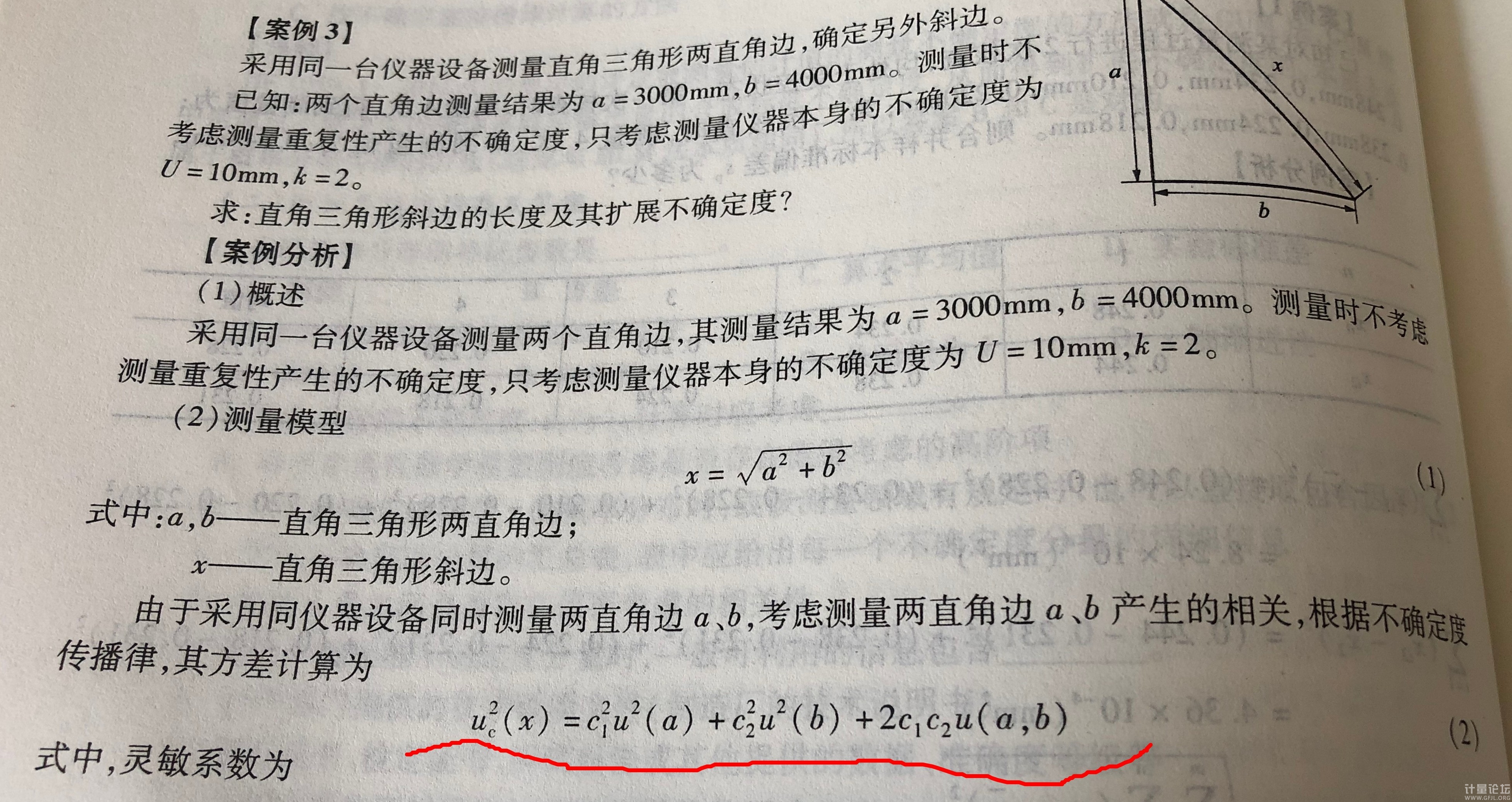 | 用同一臺(tái)儀器測(cè)量兩直邊,相關(guān)系數(shù)為1,那為什么用協(xié)方差代替了a和b的不確定度呢? |