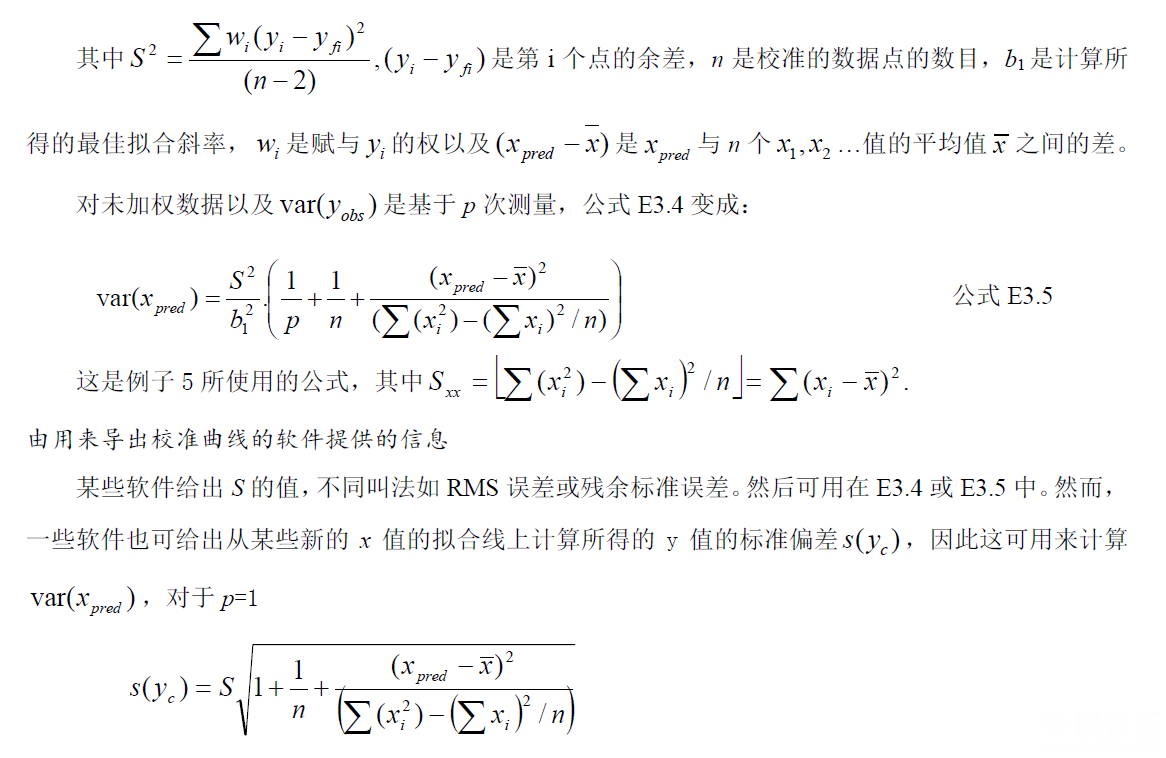 正文摘要:本帖最后由 xabxlzb 于 2020-8-4 18:23 編輯 cnas-GL006:2019《化學分析中不確定度的評估指南》附錄E.4中給出了線性最小二乘法校準不確定度的評定公式,本人發現該公式和簡單線性回歸模型的置信區間、預測區間的 ... |