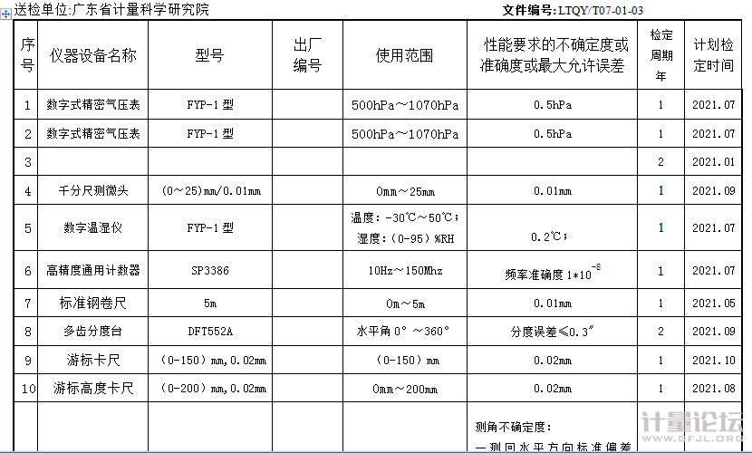 正文摘要:老師說我的表中缺少不確定度的要求 原來表中我寫的儀器性能改成現(xiàn)在不確定度或準確度或最大允許誤差了。 圖上說室內(nèi)溫度(20±5)溫度變化≤0.5,室外溫度最小分度值0.2℃和氣壓最小分度值0.5hPa. 氣壓計證書數(shù)據(jù) ... |