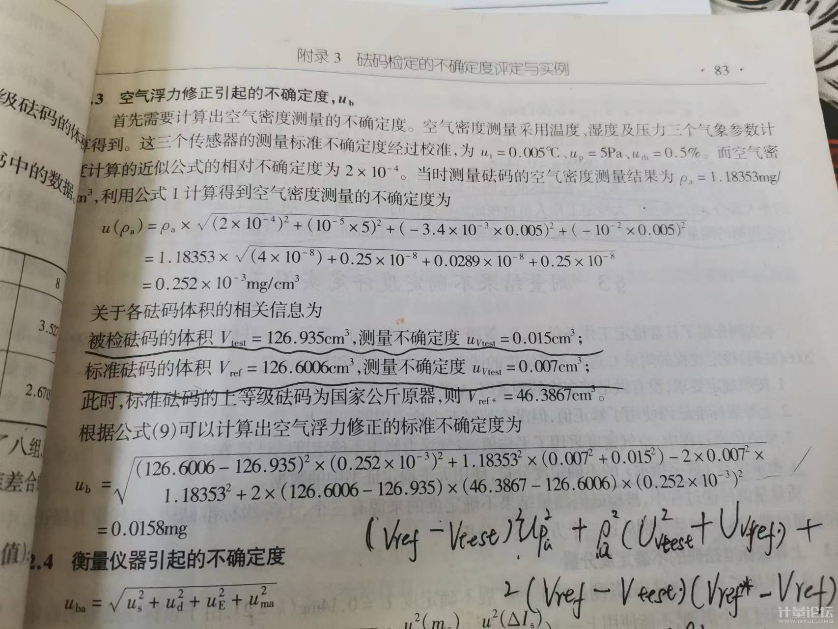 砝碼不確定度中空氣浮力修正一項里面有關砝碼體積不確定度的計算,哪位老師能給指點一下 圖片來自砝碼宣貫,姚紅編著的