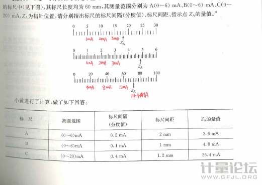 huangrong80 發表于 2022-12-2 08:33 以下,請參考: 尺C的量程20mA,有50小格,那么1格:20mA/50格=0.4mA/格 指針指向36.0格,所以讀值=0.4mA/格*36.0格=14.40mA 其它2個也是參考這樣的. |