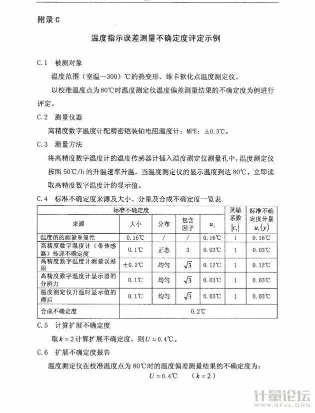 上傳圖片為JJF(浙)1051-2010附錄C的列舉的示例,關于那幾個標準不確定度的計算,哪個大神給詳細說一下?