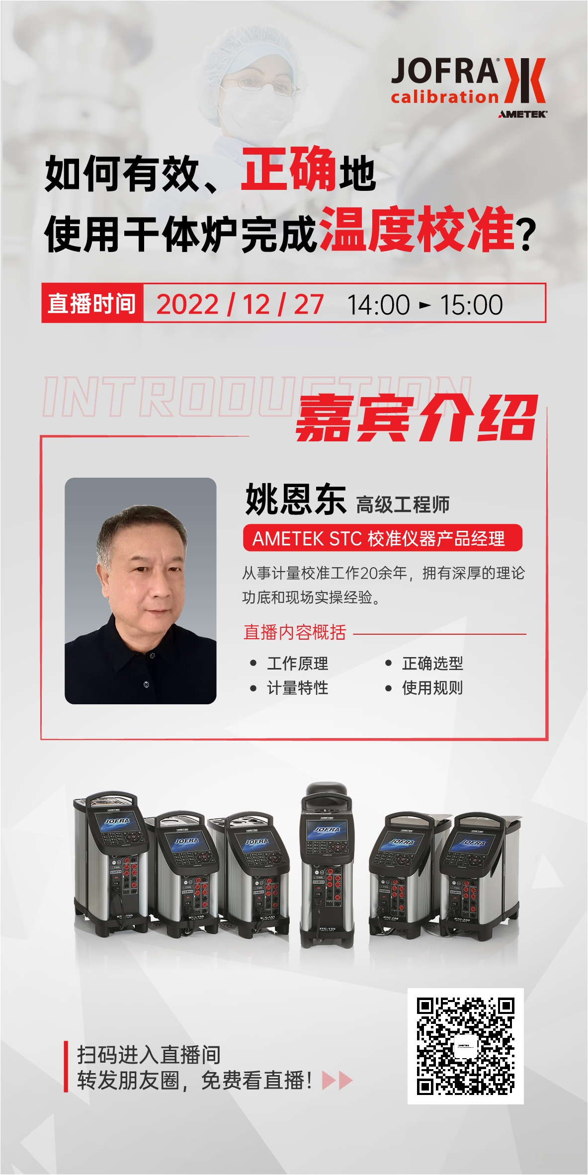 正文摘要:20年經(jīng)驗計量校準(zhǔn)專家,為您講解如何有效、正確地使用干體爐完成溫度校準(zhǔn) 內(nèi)容包括:干體爐工作原理、計量特性、正確選型、使用規(guī)則。 掃描海報中二維碼,馬上免費報名 直播時間:2022-12-27 14:00-15: ... |