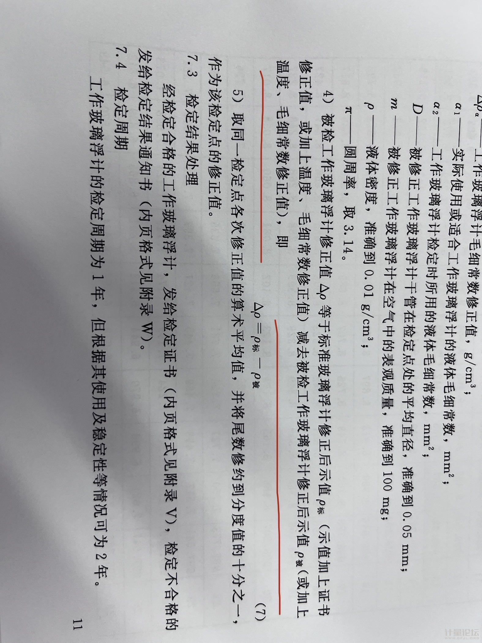 | 是哪里不懂?這里ρ被就是被檢密度計(jì)的示值,但如果需要修正(溫度修正或者毛細(xì)常數(shù)修正)的話是經(jīng)過修正后的值。 |