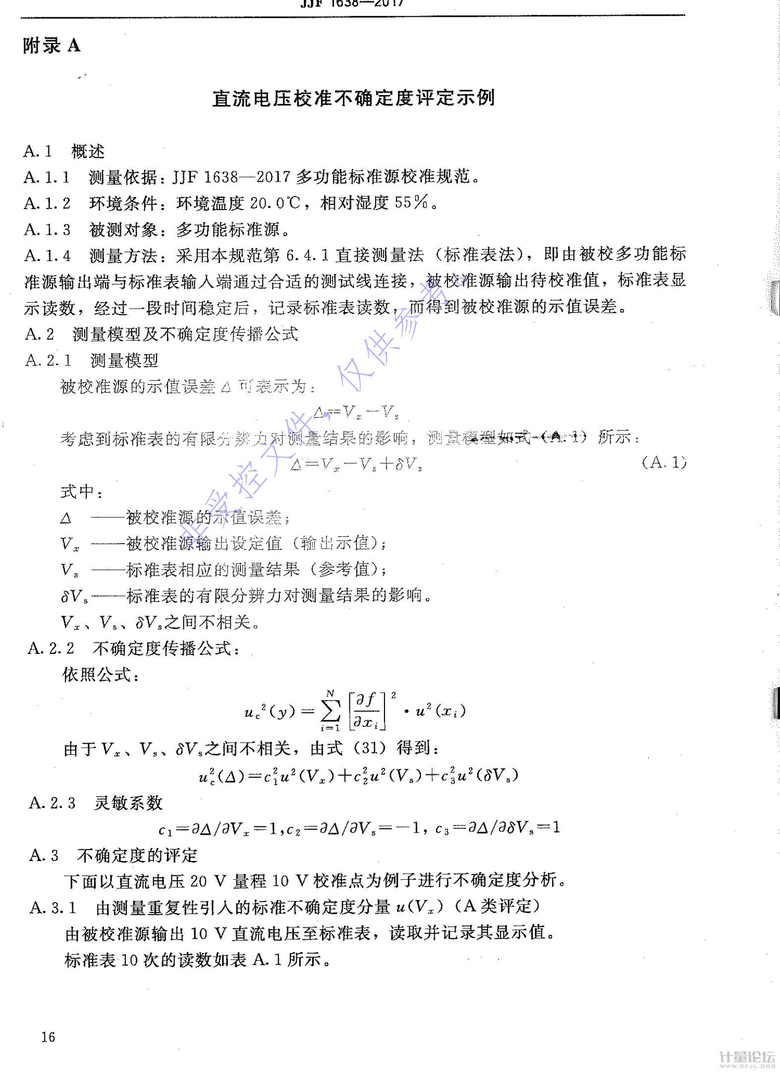 xianzhengluo 發表于 2023-9-18 22:08 得出測量結果用于計算重復性的儀器的分辨力,重復性分量由標準電壓表10次測得,測量結果由標準電壓表的示值得出并用于計算重復性,則分辨力用標準電壓表的。如果因為標準電壓表的分辨力過大,不能反映電壓源輸出的變化而造成重復性為0,則用標準電壓表的分辨力代替重復性計算不確定度分量。 |