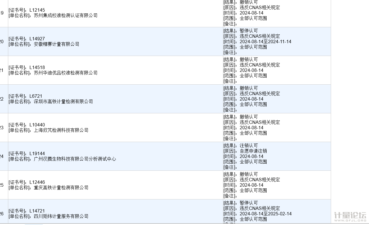 1234567888 發(fā)表于 2024-8-16 08:43 啥情況啊,這種大公司都被撤銷cnas了,這么嚴格 |