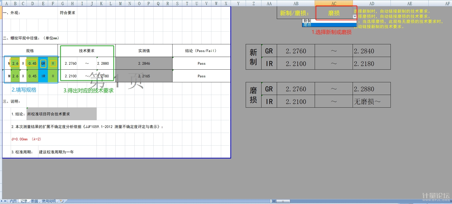 正文摘要:日本螺紋環(huán)規(guī)規(guī)模板,型號規(guī)格包含(M1-M68) GR,IR,WR。 數(shù)據(jù)來源參考標(biāo)準(zhǔn):KS B 5221-2008,KS B 5222-2009 。 填寫對應(yīng)型號規(guī)格,可自動得出對應(yīng)技術(shù)要求,方便出具證書。 ... |