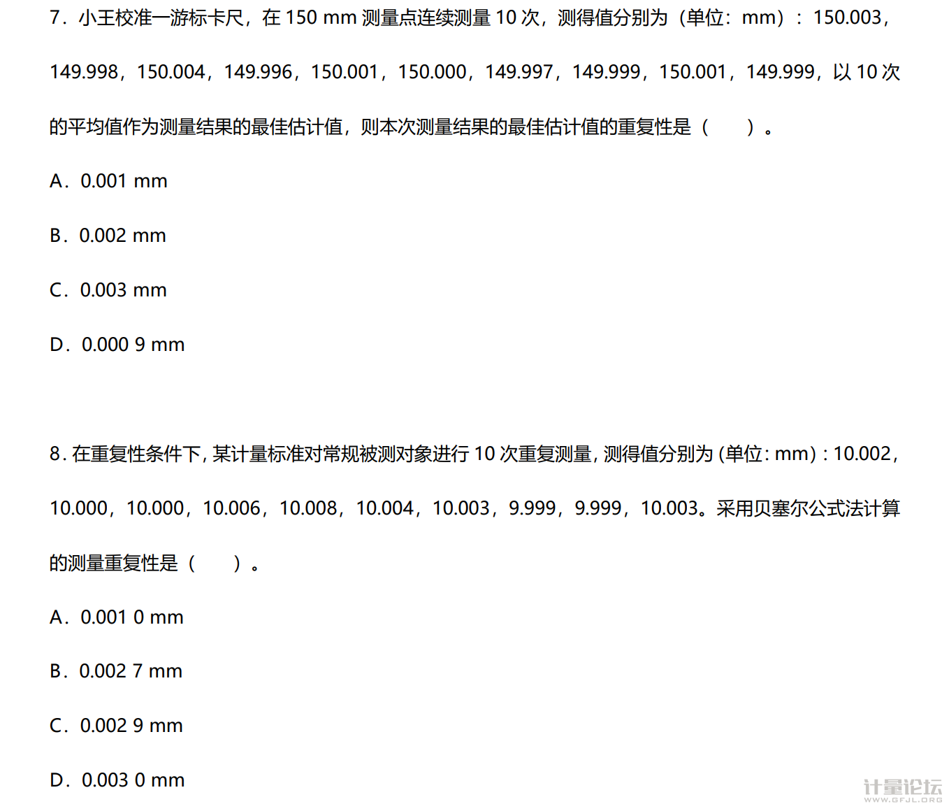 正文摘要:為什么第七題重復(fù)性計(jì)算需要s(x)除以根號n?或者說“測量結(jié)果估計(jì)值的重復(fù)性”和直接用”貝塞爾計(jì)算的測量重復(fù)性”是哪里不一樣,望各位老師解答! ... |