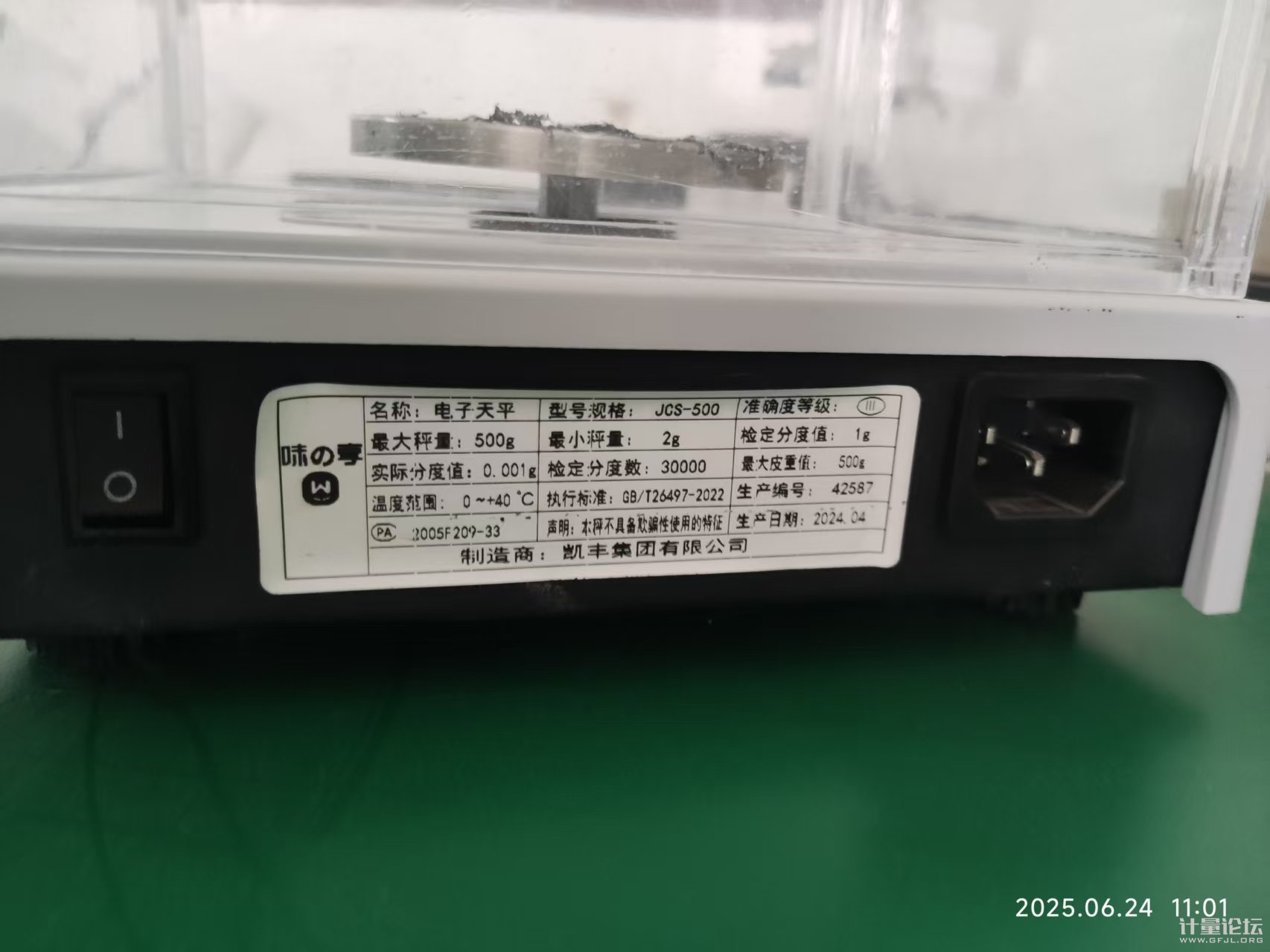 分度數=最大秤量/檢定分度值e 這個銘牌明顯不是原廠的,后面貼的或者貼牌,凱豐主要做電子秤的,一般電子秤的稱重傳感器分度數在3000或者更低,這個銘牌上是虛標的??催@個圖片,秤盤支撐和秤盤大小,明顯亂來。秤盤上的保護膜要么撕掉,要么保護好,這個樣子影響稱量的。 |
